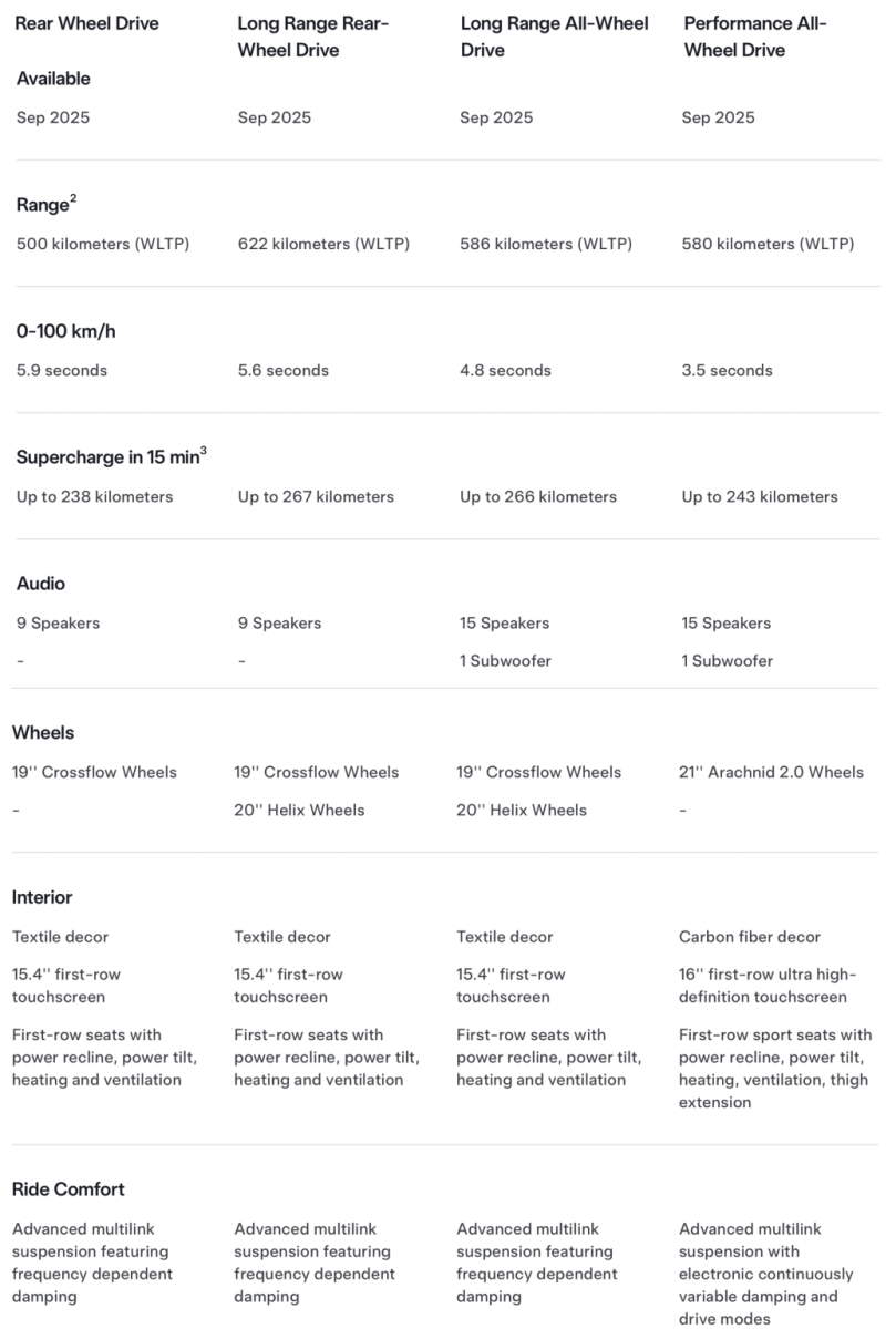 Запас ходу. За даними Tesla, автомобіль зберігає високу ефективність, пропонуючи запас ходу до 580 км за циклом WLTP. Також він може поповнити запас енергії на 243 км всього за 15 хвилин заряджання.