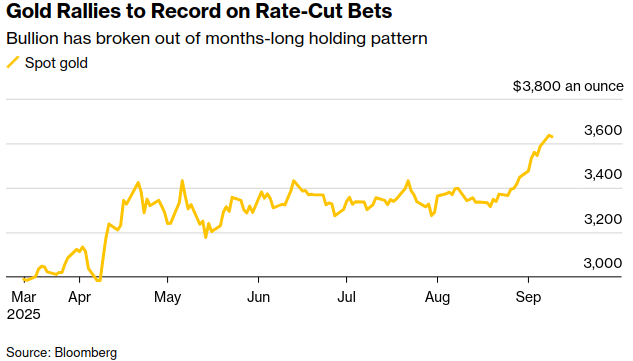 Золото продовжує бити рекорди, перевищивши $3659 на тлі очікувань зниження ставок ФРС
