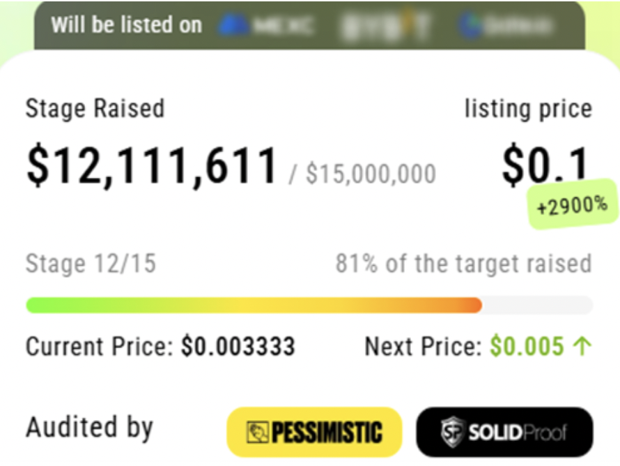 Наразі вона пройшла половину шляху, зібравши понад 15 мільйонів доларів, а ціна токена $XYZ зараз становить 0,005 долара.