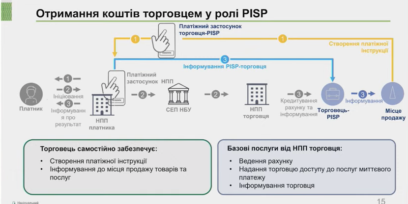 З 1 серпня 2025 року в Україні діє відкритий банкінг, що дозволяє торговцям у ролі PISP (після відповідної авторизації в НБУ) допомогти клієнтам ініціювати платежі безпосередньо з їх рахунків. Це спрощує шлях користувача та дає бізнесу миттєве підтвердження зарахування коштів.