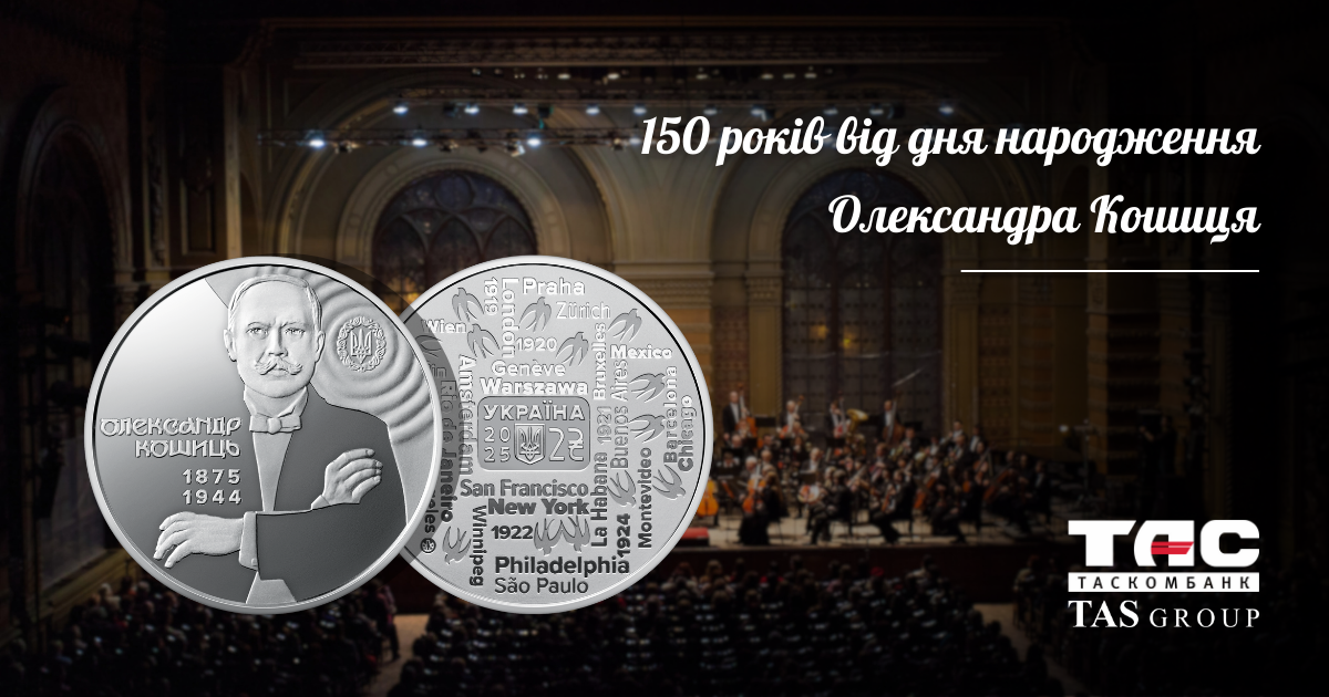 В Таскомбанку стартує продаж монети «150 років від дня народження Олександра Кошиця» у сувенірному пакованні