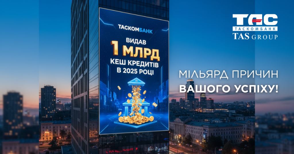 Таскомбанк із гордістю повідомляє: у 2025 році банк видав Кеш-кредитів на суму 1 мільярд гривень! В банку вірять в український бізнес і підтримують його швидкими та зручними фінансовими рішеннями.