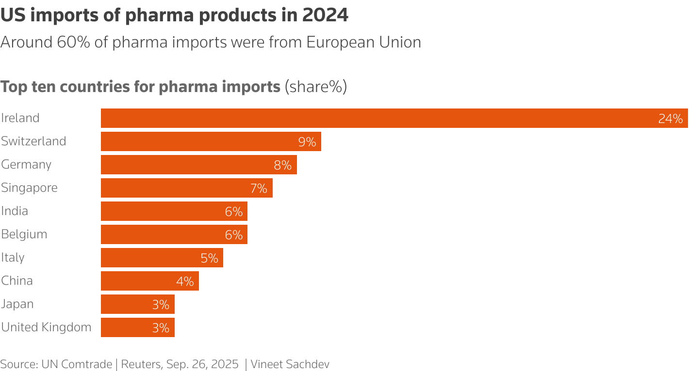 Варто зазначити, що у 2024 році США імпортували близько 60% ліків з країн Європейського Союзу.