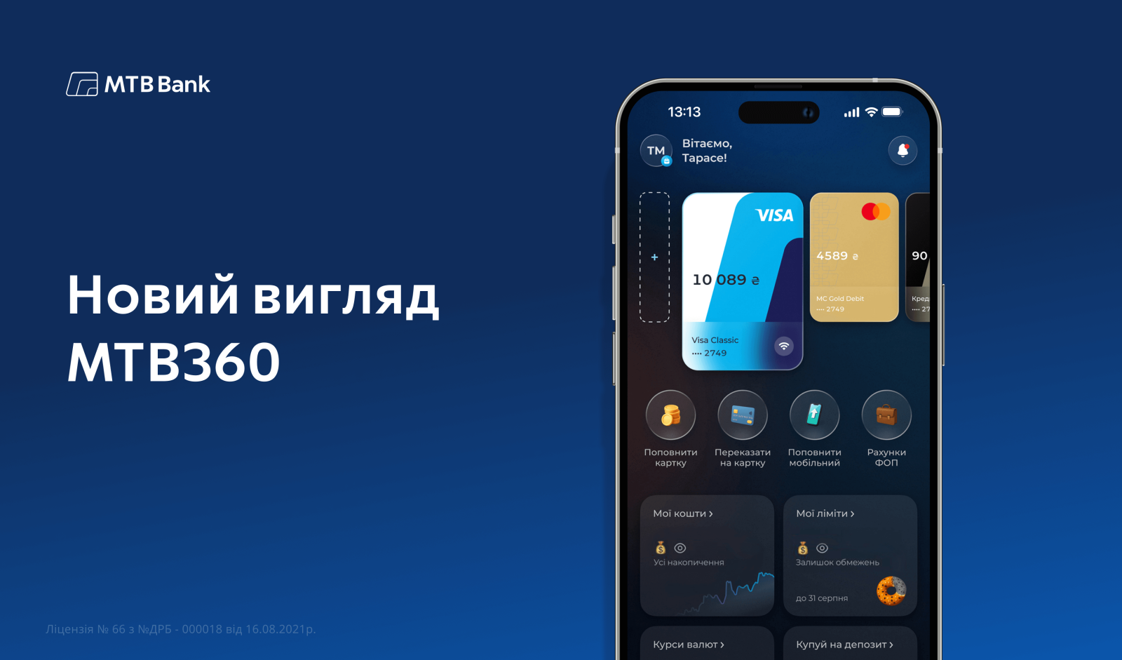 МТБ Банк оновив головний екран — тепер він виглядає ще сучасніше та робить банкінг максимально простим і приємним.