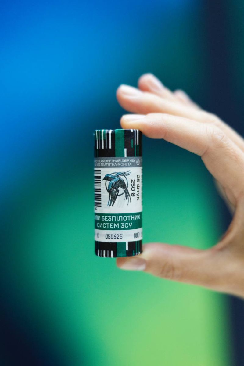 Водночас частина тиражу обігової пам’ятної монети «Сили безпілотних систем Збройних Сил України» буде сформована в спеціально оформлені ролики. Ролик міститиме 25 обігових пам’ятних монет. На сувенірному папері, у який запаковано кожний ролик, зображено сталеву ластівку, емблему Сил безпілотних систем Збройних Сил України, на тлі стилізованих повітряних потоків. Тираж роликів — 20 тис. шт.