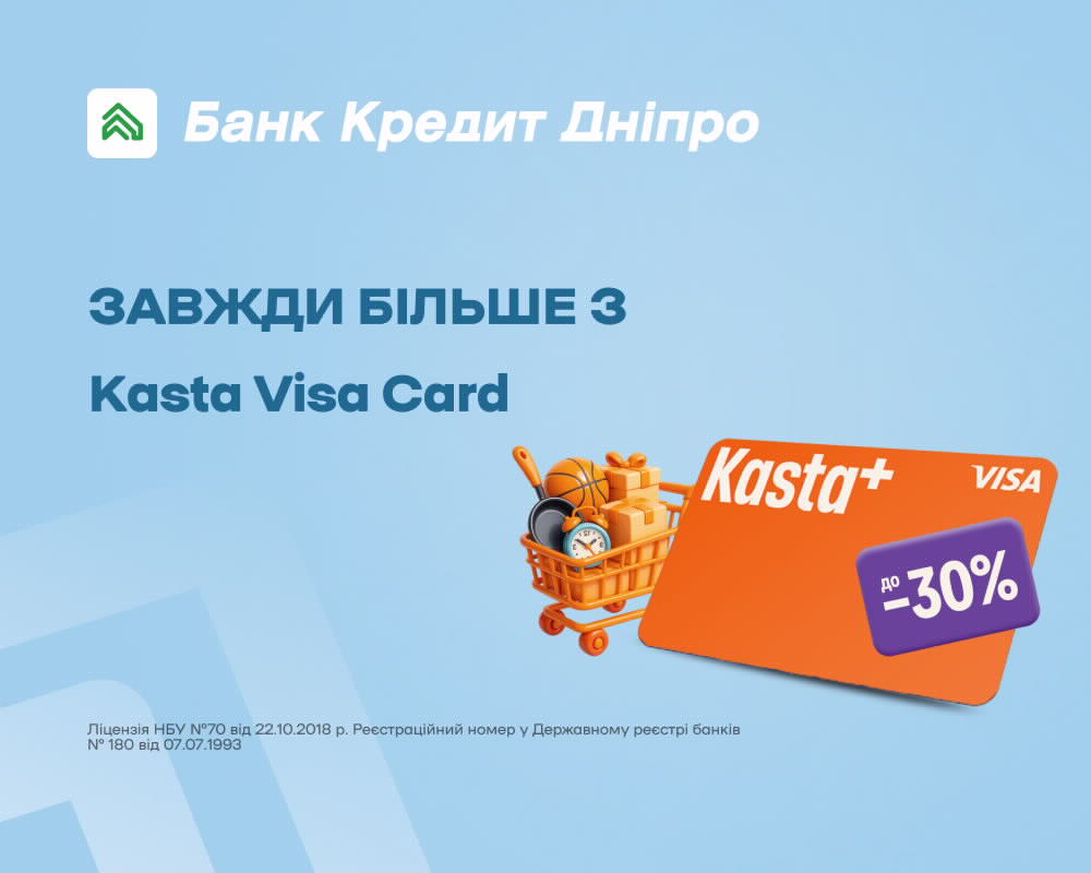 Kasta Visa Card — це спільний продукт Банку Кредит Дніпро та екосистеми Kasta SuperApp, здатний поєднати зручність цифрового банкінгу з вигодами від щоденних покупок. Картка відкривається повністю онлайн у Kasta SuperApp, а ідентифікація клієнта відбувається через застосунок «Дія». Процес займає до 10 хвилин, без необхідності відвідувати відділення, а сама картка доступна у форматі digital-first — її можна відразу додати до Apple Pay чи Google Pay.