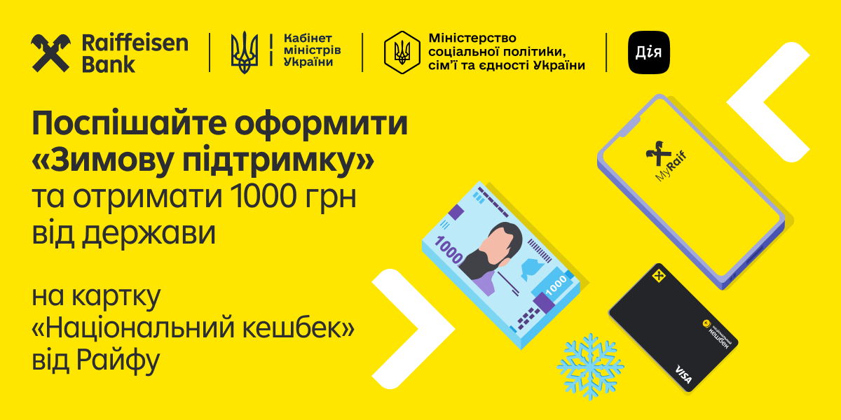 «Зимова підтримка»: отримайте 1000 гривень допомоги від держави через Райф
