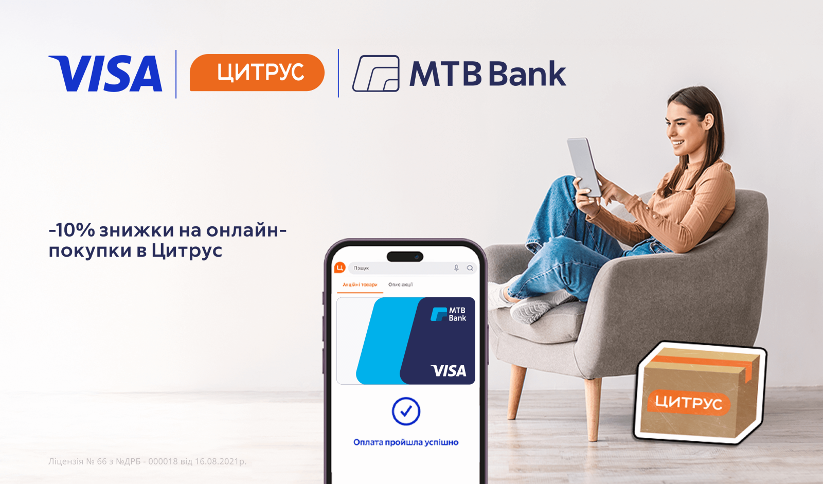 - -10% знижки на онлайн-покупки в Цитрус при оплаті карткою Visa від МТБ Банку.