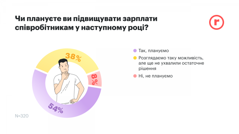 Лише 8% компаній не мають наміру переглядати зарплати наступного року.