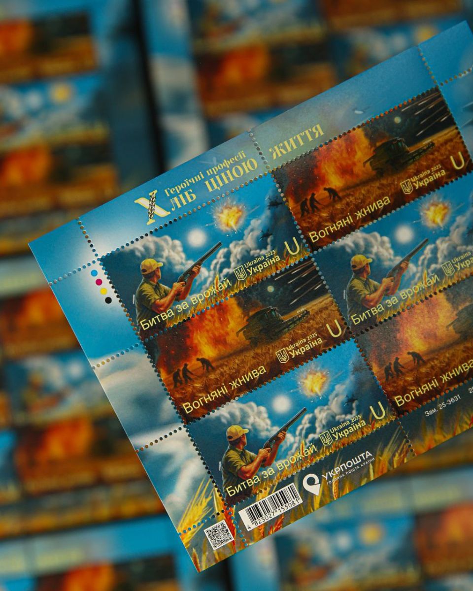 На новій марці зображений образ відомого фермера з Херсонщини — Олександра Гордієнка, якому президент посмертно присвоїв звання Героя України. Він вивіз тисячі мін, збив сотні дронів і щодня боровся за врожай. 5 вересня 2025 року ворог забрав його життя.