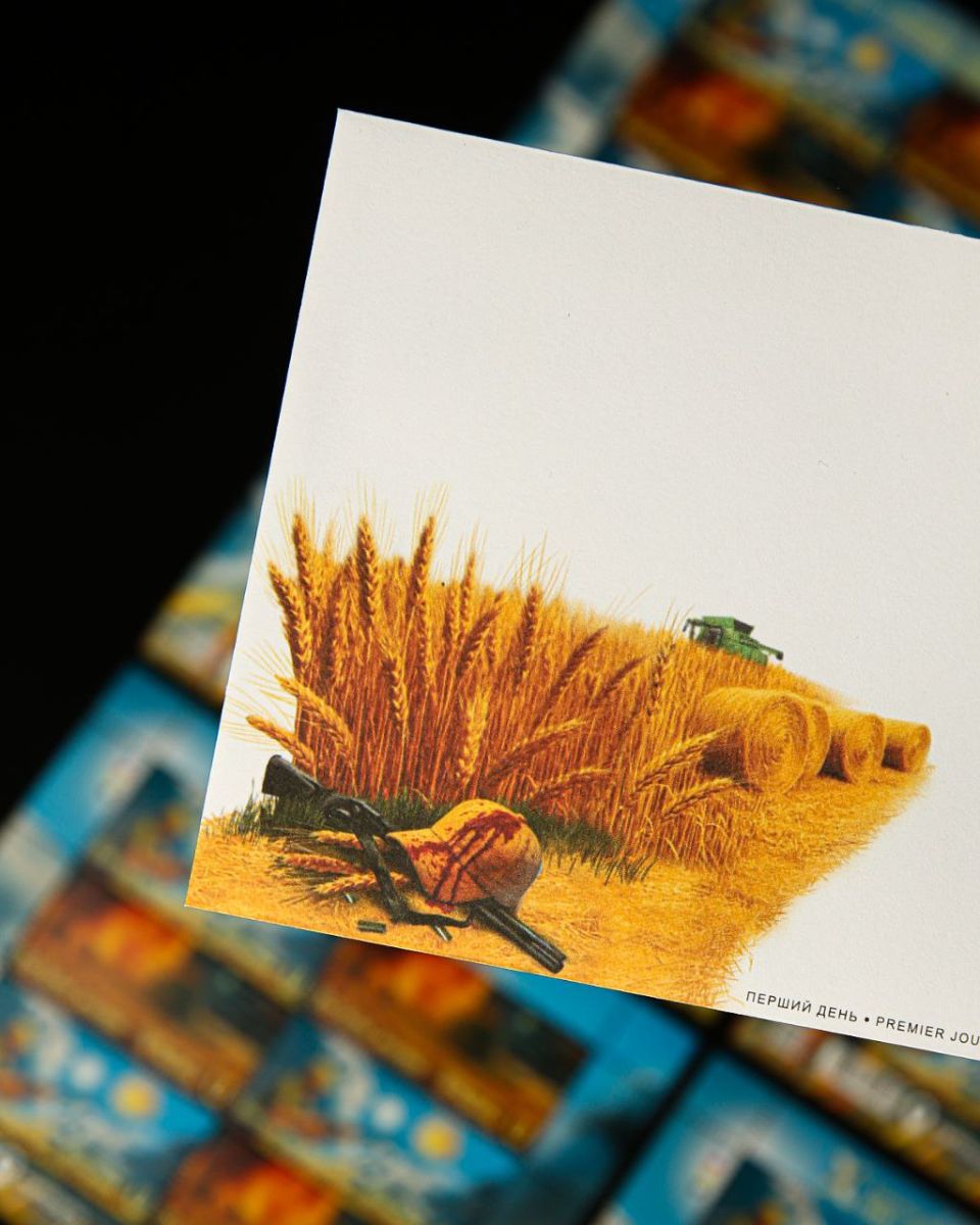 На новій марці зображений образ відомого фермера з Херсонщини — Олександра Гордієнка, якому президент посмертно присвоїв звання Героя України. Він вивіз тисячі мін, збив сотні дронів і щодня боровся за врожай. 5 вересня 2025 року ворог забрав його життя.