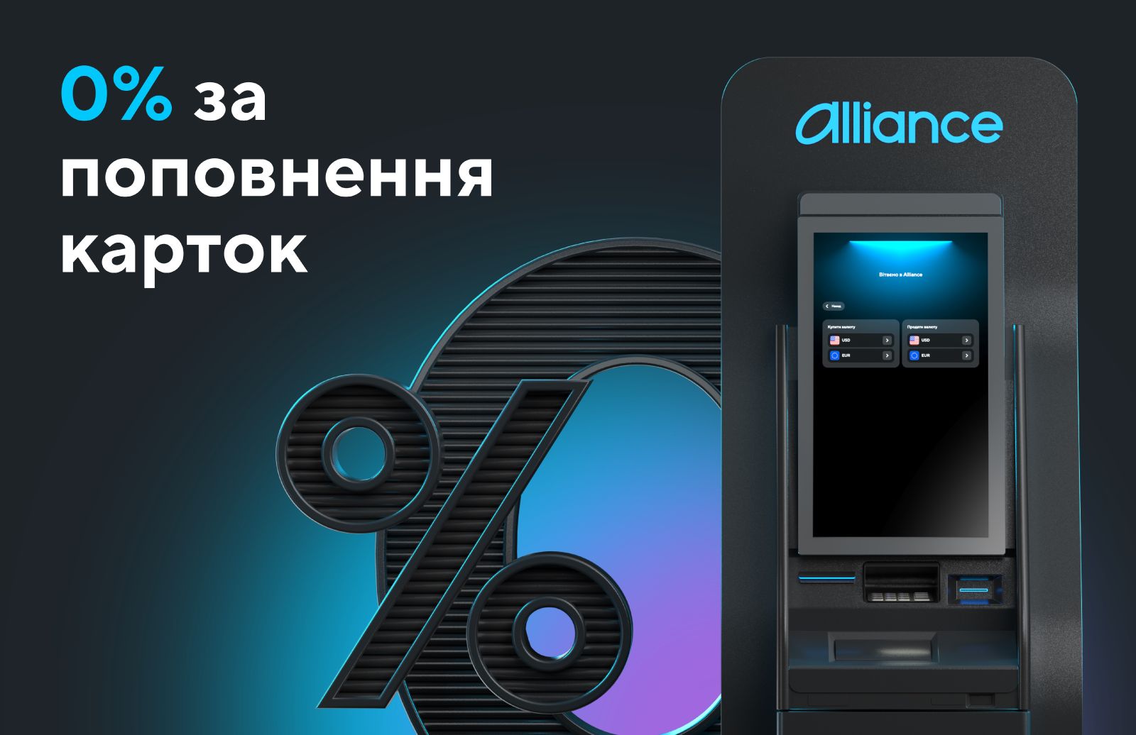 Безкоштовне поповнення карток у валютних банкоматах Alliance bank