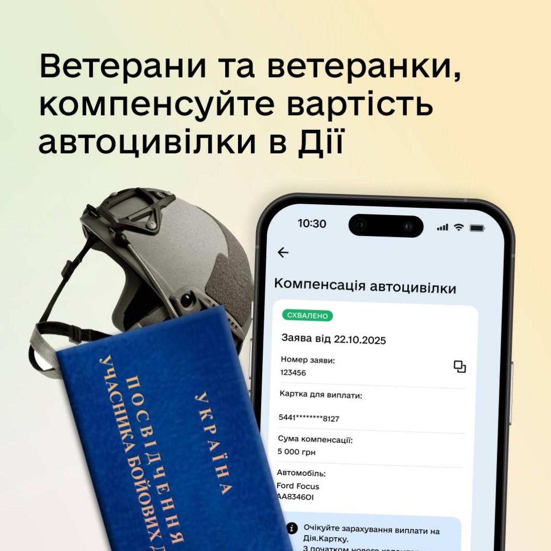 Ветерани та ветеранки зможуть отримати компенсацію вартості автоцивілки на Дія.Картку Приватбанку