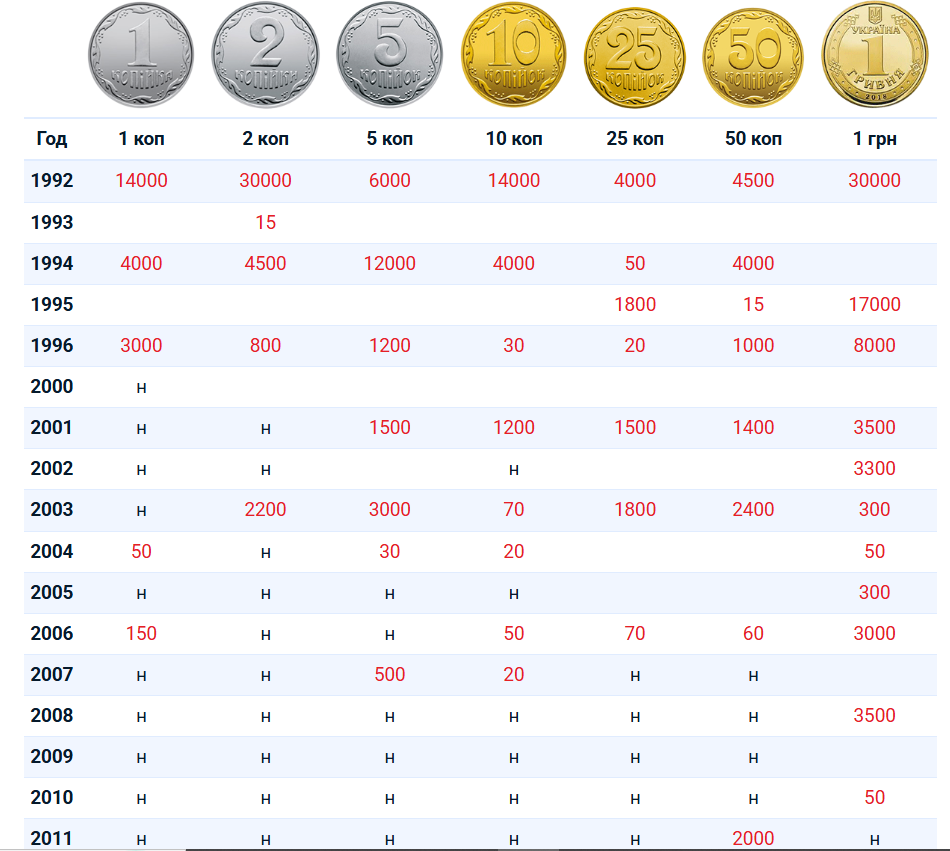Порада 2. Для оперативної оцінки варто відразу відзначити для себе рідкісніші роки та номінали повсякденних монет (і їх деякі різновиди), які затребувані нумізматами. Подібне рішення звузить коло пошуку рідкісних і дорогих позицій. Здебільшого це період із 1992 до 2014 року, ціни вказані в гривнях у 2025 році, а сама таблиця, як і частина ілюстрацій рідкісних різновидів, взята на сайті Monety in UA: