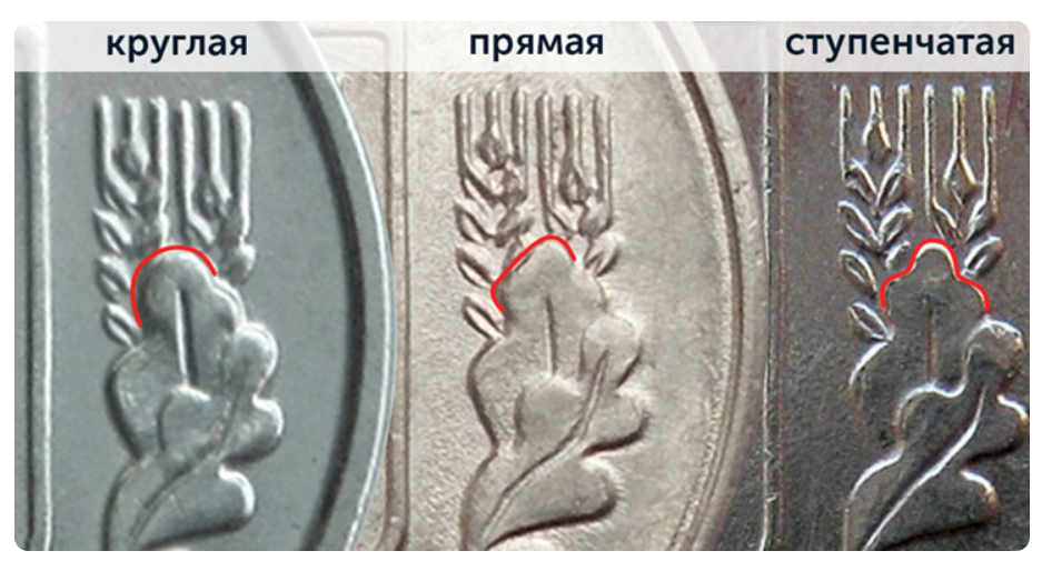 Щоб визначити штамп аверса, подивіться на форму правого верхнього листа: