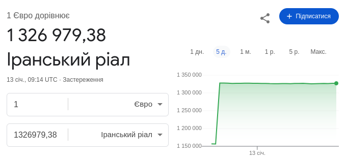 Національна валюта Ірану продемонструвала катастрофічне падіння. Стрімке знецінення грошової одиниці відбувається на тлі масштабних соціальних заворушень, які охопили країну.