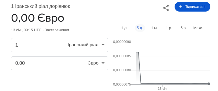 Іранський ріал обвалився до нуля на тлі масових протестів