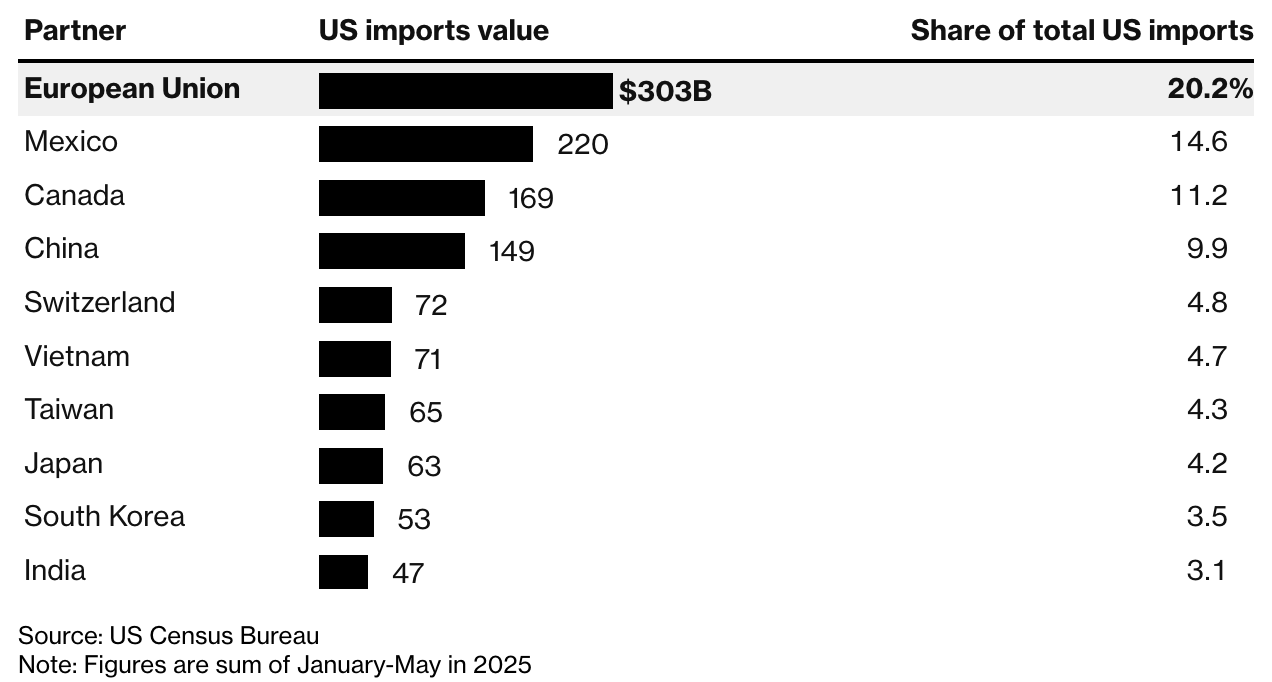 Дана угода встановлює 15-відсотковий тариф США на більшість товарів ЄС в обмін на зобов'язання ЄС скасувати мита на промислові товари США та деякі сільськогосподарські продукти. Фон дер Ляєн, яка курує торговельні переговори від імені ЄС, уклала угоду в надії уникнути повномасштабної торговельної війни з Трампом.
