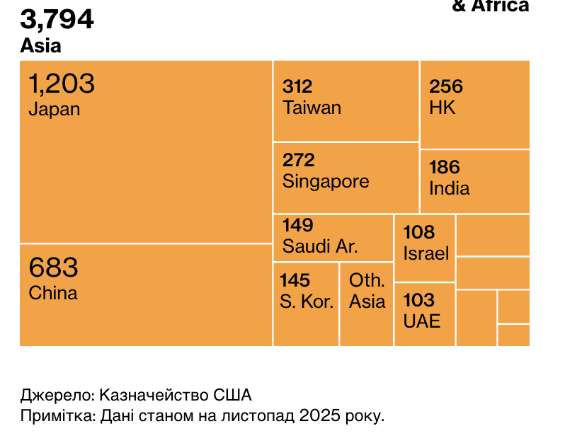 Фото: Казначейські цінні папери США, що належать іноземним резидентам, у мільярдах доларів