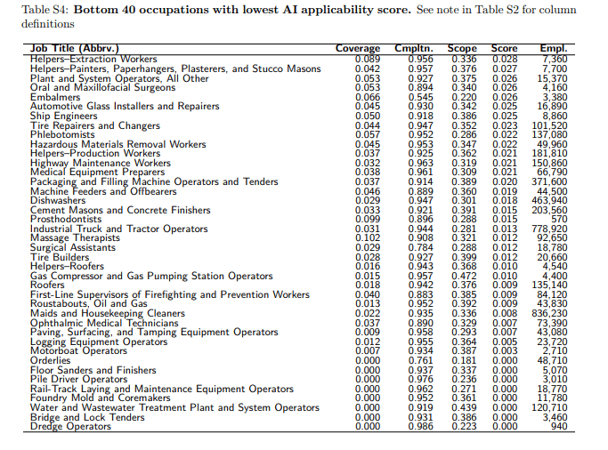 Автори підкреслюють, що майже всі професії з високою застосовністю ШІ складаються переважно з інформаційної роботи, а самі ШІ-інструменти найчастіше виступають у ролі консультанта, викладача чи помічника, а не автономного виконавця.