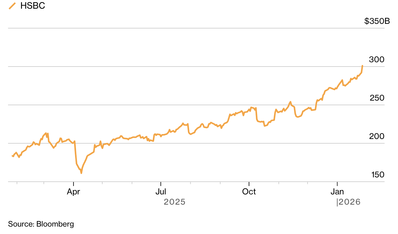 Британський фінансовий гігант HSBC Holdings Plc встановив історичний рекорд для європейського банківського сектору. Ринкова вартість банку вперше подолала позначку в $300 млрд (£219,2 млрд), що робить його найдорожчою фінансовою установою в Європі. Про це повідомляє Bloomberg.