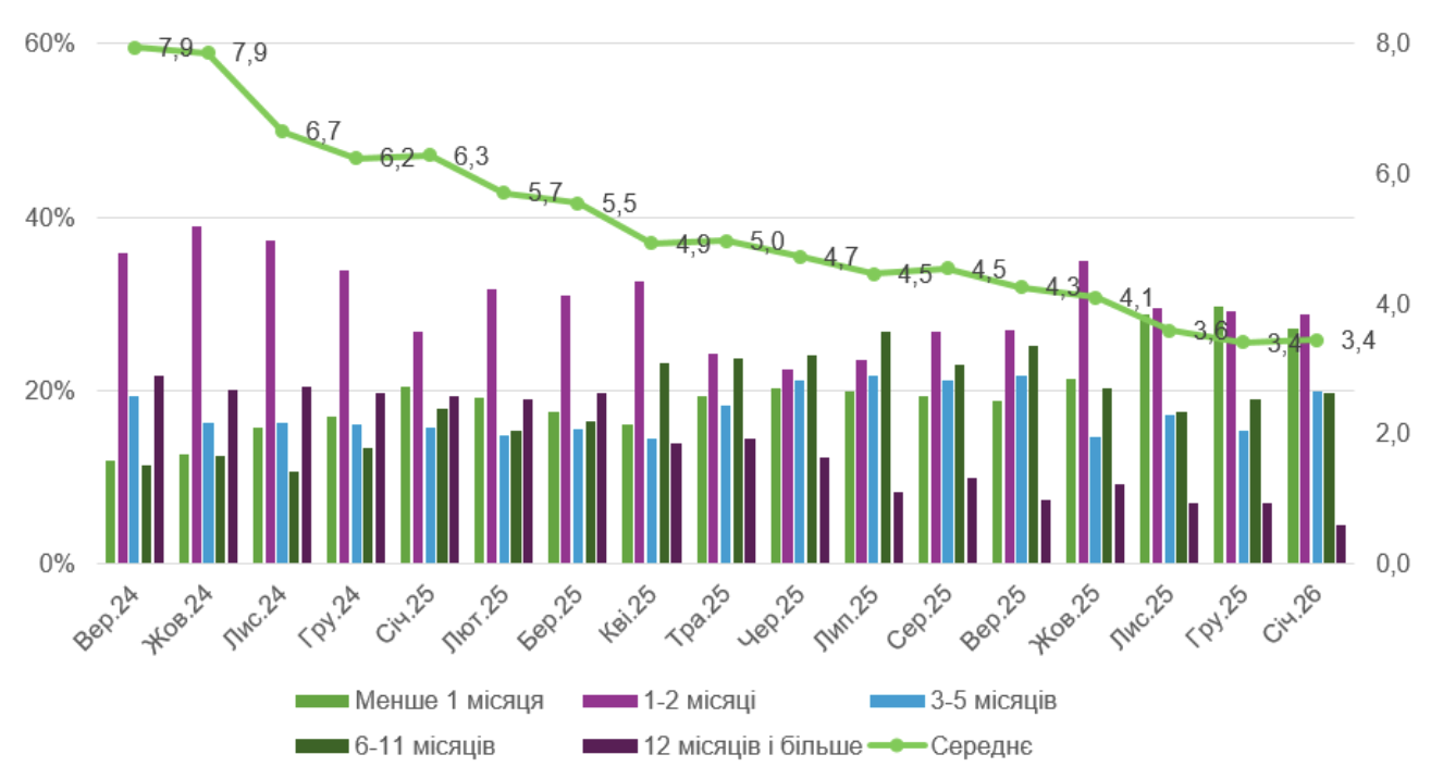 Середній термін забезпеченості новими замовленнями стабілізувався на рівні 3,4 місяця.