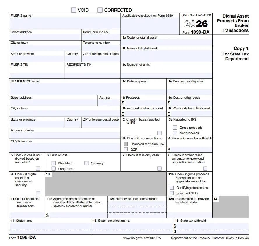 З наступного календарного року вводиться обов'язкова декларація 1099-DA («Доходи від цифрових активів, отримані від брокерських угод»).