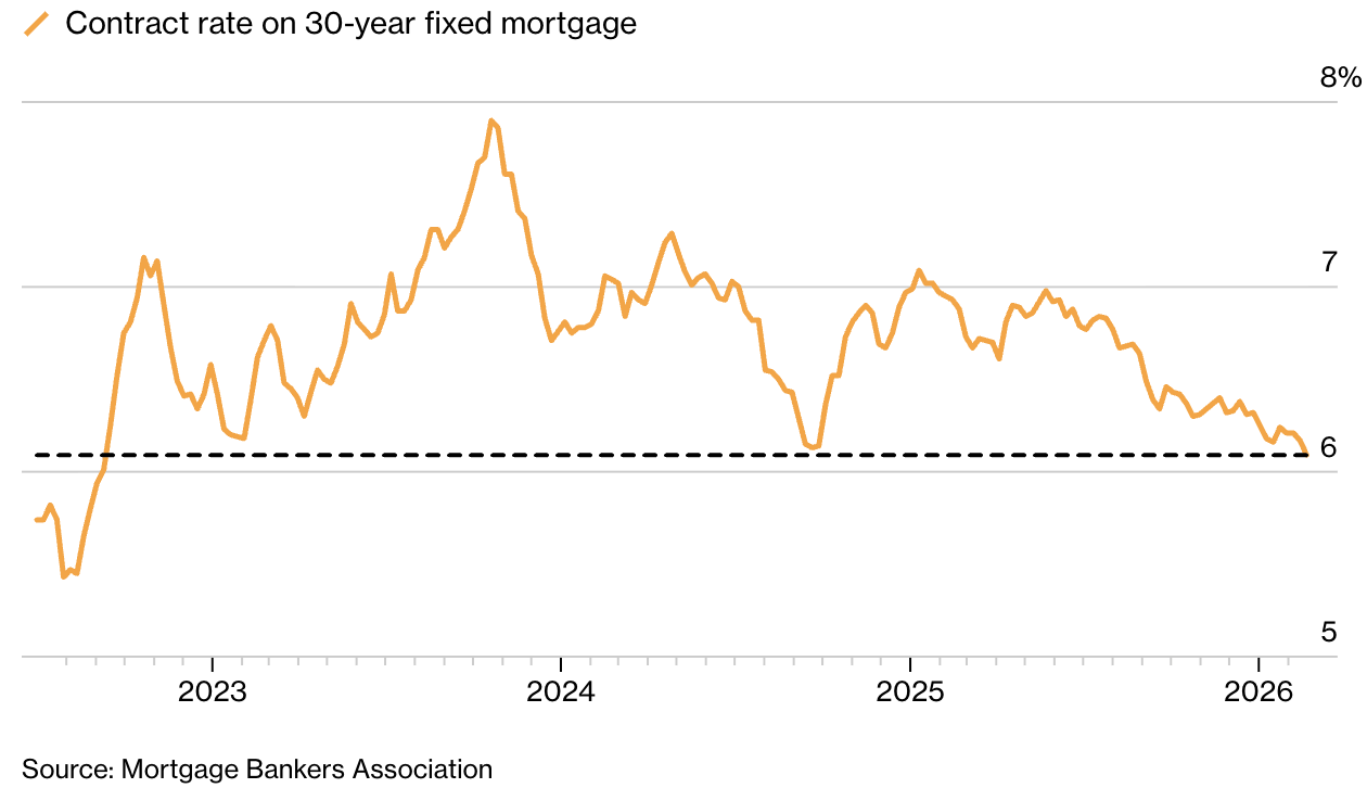 Згідно з даними Асоціації іпотечних банкірів (MBA), оприлюдненими цієї середи, середня ставка за 30-річним фіксованим кредитом впала на 8 базисних пунктів — до 6,09%.