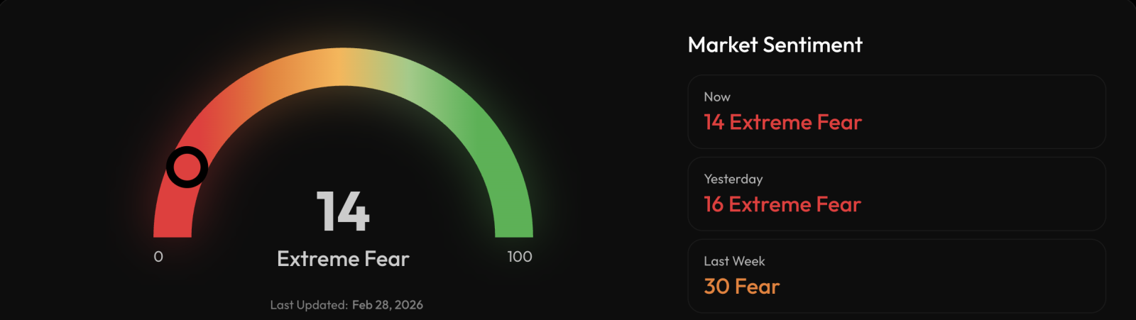 Індекс страху та жадібності знизився на два пункти порівняно з показником від 27 лютого. Поточне значення сигналізує про домінування песимістичних настроїв на ринку та схильність інвесторів до продажу активів.