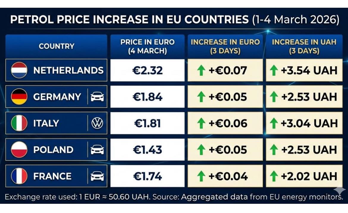 За 2 дні ціни на пальне (бензин, дизель) в Україні зросли на 10−14 % (в середньому +10 грн на літр). В Європі — на 2−3% (+ 2 — 3 грн). Про це написав експерт з питань соціальної та економічної політики, ексміністр соцполітики Павло Розенко.