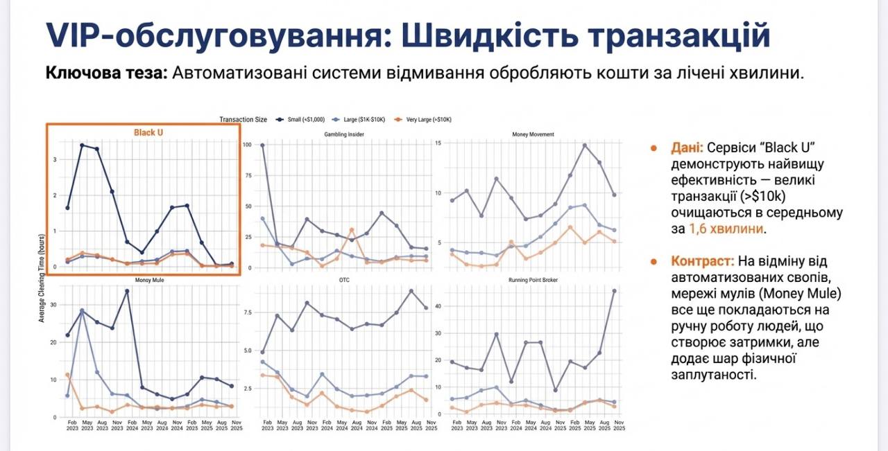 За його словами сервіси «Black U» (перекладається як брудний USDT) скуповують tether з дисконтом 20% і за 1,6 хвилини вам вже повертають відмитий.