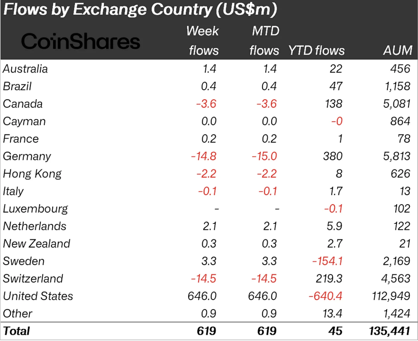 Майже весь обсяг притоку забезпечили інституційні інвестори зі США — вони вклали $646 млн. Натомість інвестори з інших регіонів були налаштовані більш скептично: