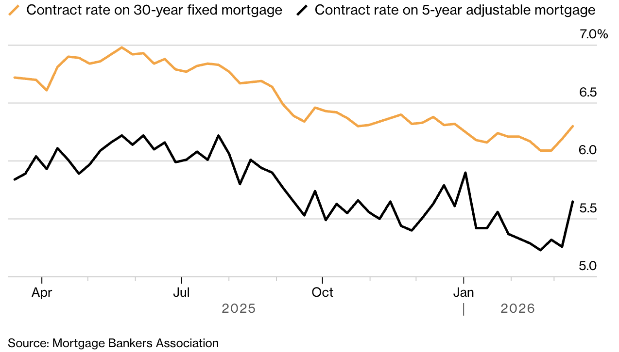 Згідно з даними Асоціації іпотечних банкірів (MBA), оприлюдненими в середу, 18 березня, середня контрактна ставка за 30-річною фіксованою іпотекою зросла на 11 базисних пунктів — до 6,30% за тиждень, що завершився 13 березня. Сукупне зростання за останні два тижні стало наймасштабнішим з квітня минулого року.
