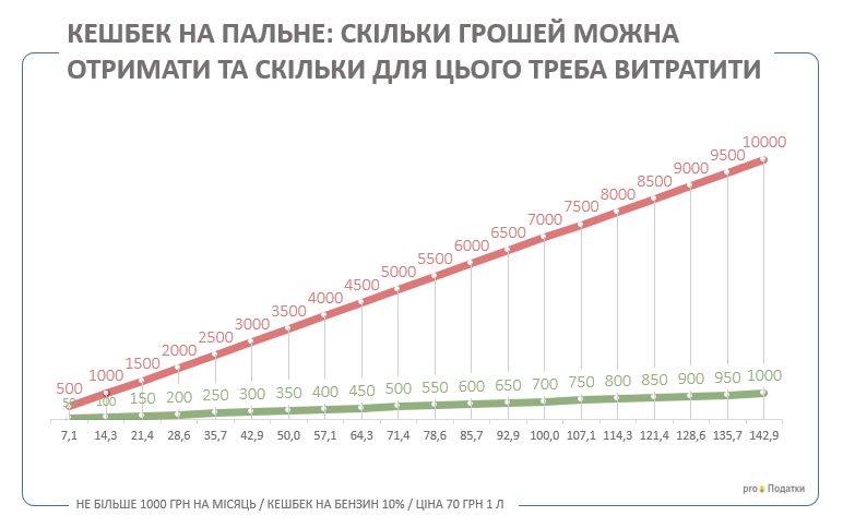 «Наскільки сильним стимулом було б для вас передумати економити на пальному і після введення кешбеку купити заради нього ті ж 43 літри? Заплатити таки ці 3 000 грн для того щоб повернувши собі 300 грн? Витративши, замість запланованої раніше економії, чистими 2 700 грн? А 1 500 грн щоб отримати 150 грн? А 10 000 грн щоб отримати тисячу?» — зазначається у дописі.