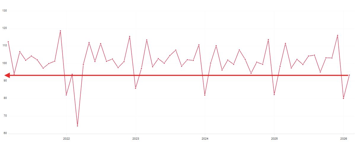 Попри формальне зростання роздрібного товарообігу у річному вимірі, внутрішня динаміка ринку на початку 2026 року викликає серйозне занепокоєння в експертів. Фінансовий аналітик Андрій Шевчишин вказує на сильне просідання продажів у лютому, яке стало найбільшим для цього місяця щонайменше з 2010 року.