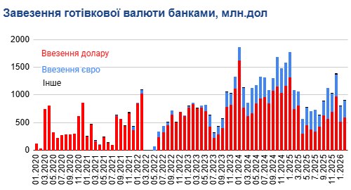 За два місяці 2026 року українські банки завезли в країну готівкову валюту на загальну суму $1,7 млрд. Попри стабільні показники початку року, у березні очікується просідання обсягів через логістичні перепони на європейських маршрутах. Про це повідомив фінансовий аналітик Андрій Шевчишин на своїй сторінці у Facebook.