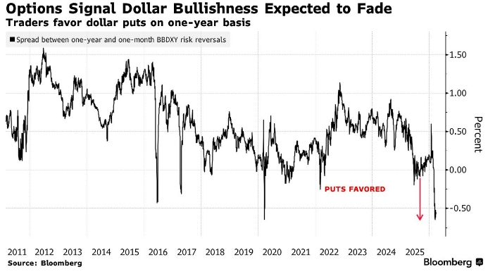 У 2025 році індекс долара Bloomberg впав приблизно на 8% — це було найгірше падіння з 2017 року. На нього тиснули зниження ставок і торговельна політика США.
