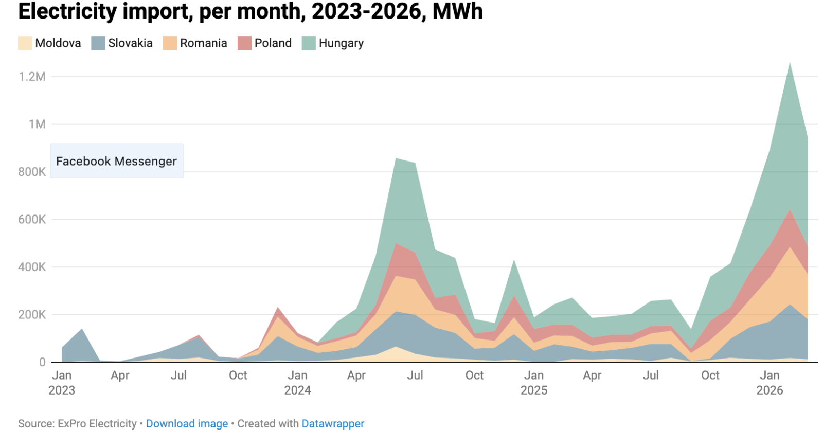 Загалом, за цей місяць було експортовано 30,2 тис. МВт-год — найбільше до Молдови, 47,5%. У порівнянні з березнем 2025 р. експорт впав на 61%.