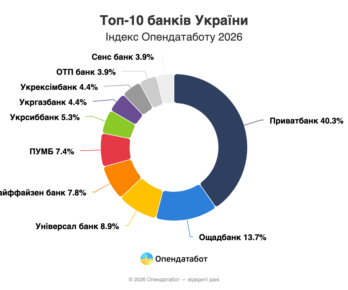 Понад 304 млрд грн заробила десятка кращих банків України, які потрапили до Індексу Опендатаботу 2026. Їх сукупний дохід зріс на 14%, порівняно з минулим роком.