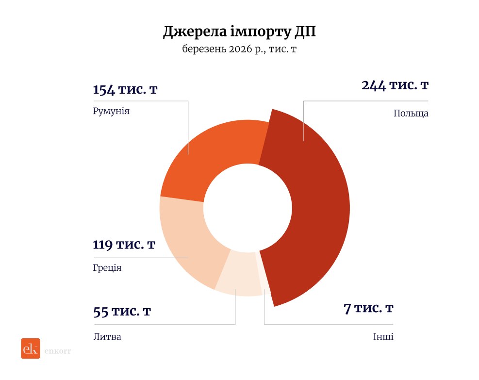 Судячи з контрактів, квітень лише посилить цей тренд. Один із найбільших гравців — «Укрнафта» — планує завезти близько 200 тис. тонн дизелю замість звичних 70−100 тис. Це приблизно третина місячної потреби ринку.