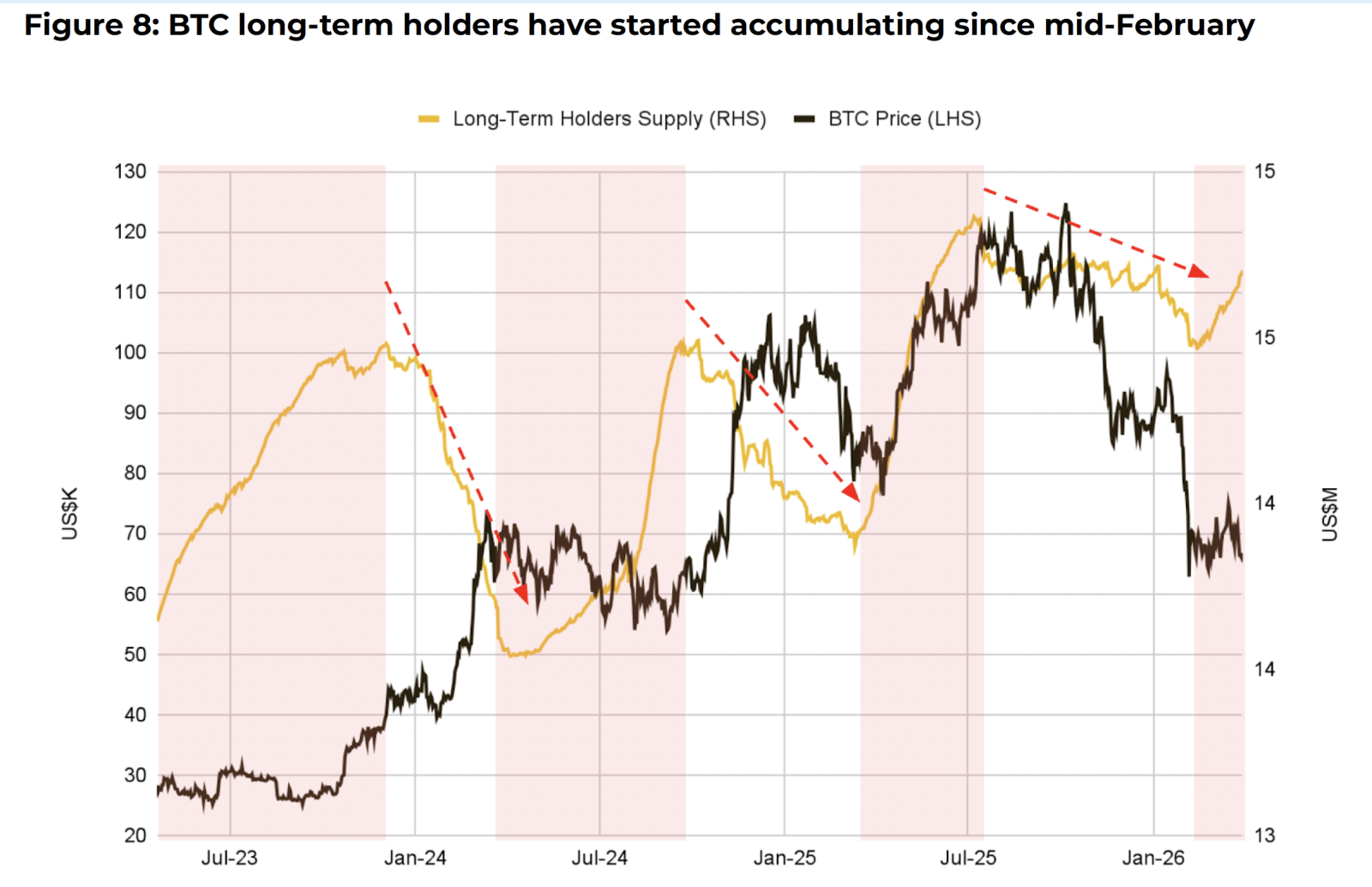 Третій сигнал — повернення накопичення з боку довгострокових власників Bitcoin (long-term holders, LTH). До цієї категорії відносять учасників, чия середня дата покупки перевищує 155 днів. Після падіння приблизно на 46% від історичного максимуму жовтня 2025 року пропозиція в LTH-гаманцях знову почала зростати із середини лютого. Березень також став першим позитивним місяцем 2026 року для потоків у спотові ETF на Bitcoin, які залучили близько $1,2 млрд. Разом ці сигнали схожі на початок нового циклу накопичення.