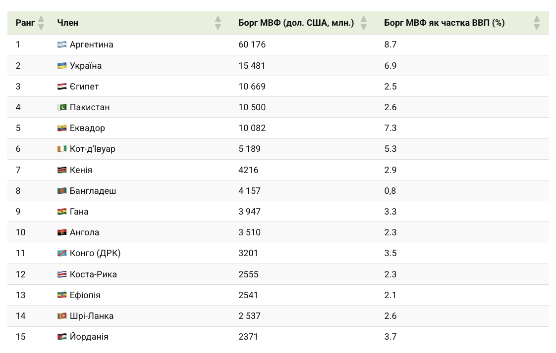 Україна, Аргентина та Пакистан: які країни найбільше заборгували МВФ
