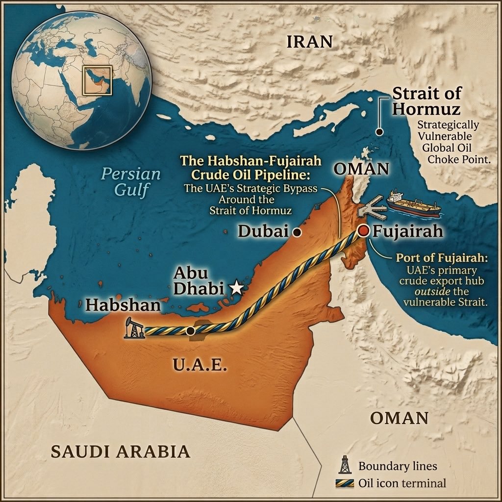Поширений в інфопросторі наратив про те, що Абу-Дабі «заллє ринок» нафтою, спростовується логістичними та інфраструктурними можливостями країни. Єдиний маршрут ОАЕ, що оминає Ормузьку протоку — нафтопровід Хабшан-Фуджейра (ADCOP) — має базову пропускну здатність 1,5 млн барелів на добу з можливістю короткочасного збільшення до 1,8 млн барелів. Ці ліміти офіційно підтверджуються профільними моніторинговими агенціями Lloyd's List та Energy Intelligence.