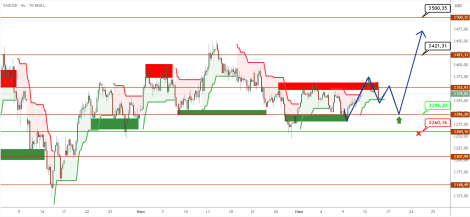 В данный момент цена торгуется с умеренным повышением недалеко от своих недельных максимумов. Ожидаемая зона поддержки не была протестирована и сохранила свою целостность, что указывает на актуальность прежнего восходящего вектора. Для его подтверждения покупателям необходимо закрепиться выше уровня 3296, где теперь проходит граница основной зоны поддержки. Очередной ретест в случае коррекции к этому уровню и последующий отскок от этой зоны позволит сформировать следующую восходящую волну, которая нацелится в область между 3421-3500.