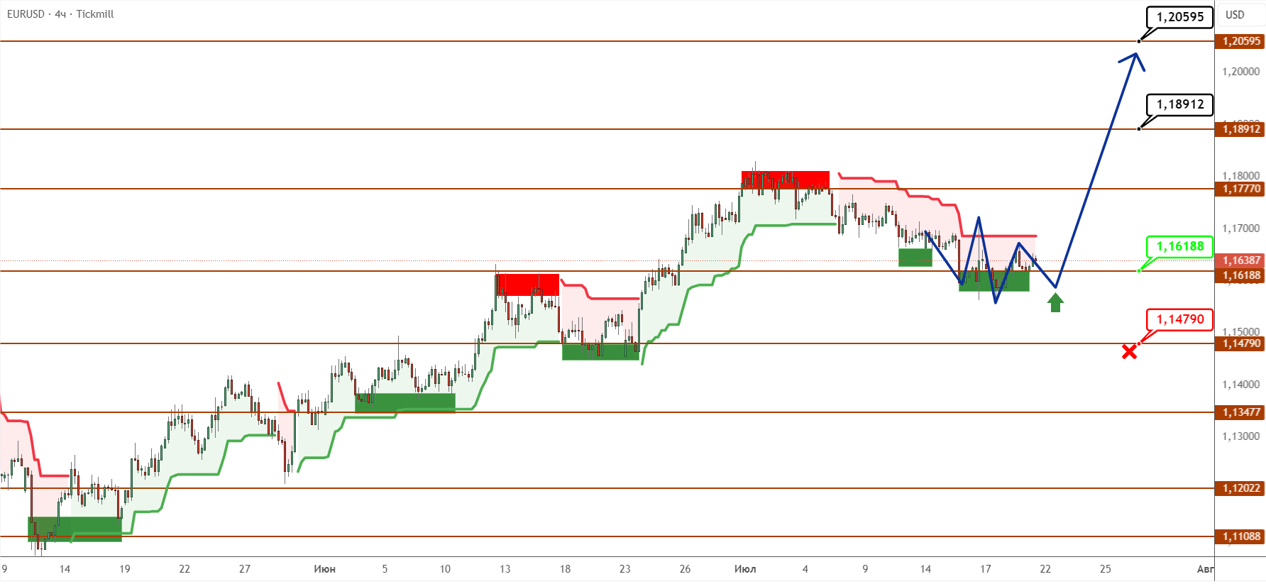 Отмена текущего сценария состоится в случае пробоя поддержки и дальнейшего ухода цены ниже разворотного уровня на 1,1479.