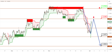 Отмена текущего сценария состоится в случае пробоя сопротивления и дальнейшего ухода цены выше разворотного уровня на 1,1777.