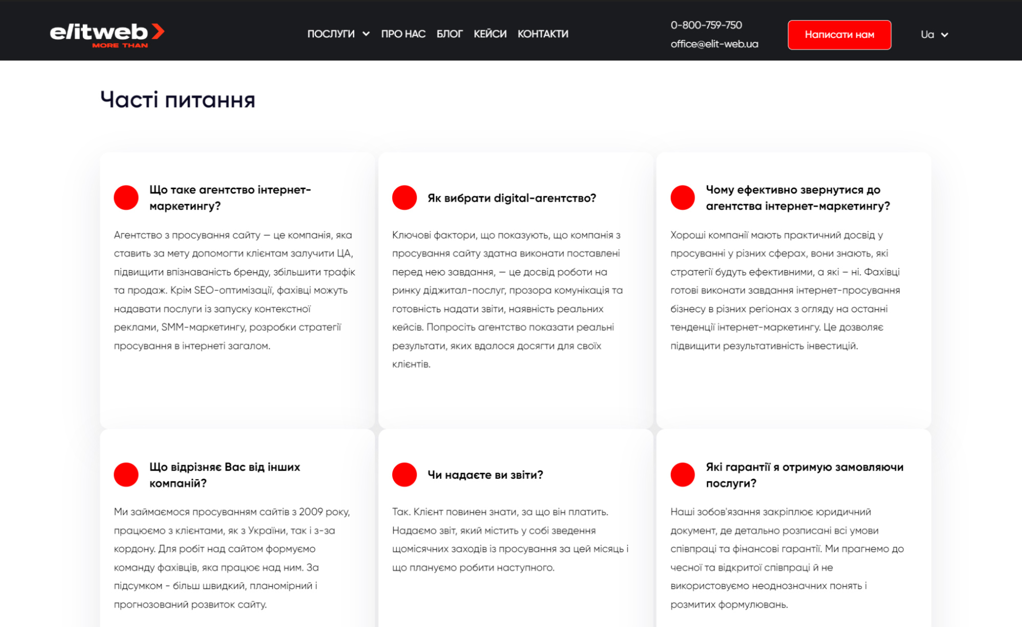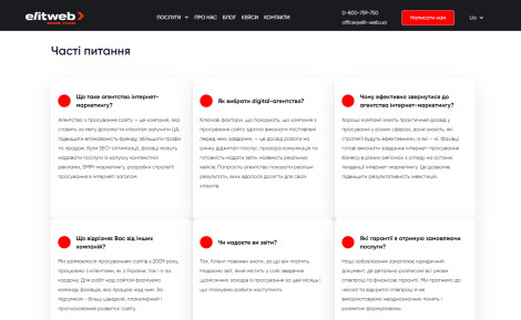 На кожне із запитань можна клікнути, щоб розгорнути його й отримати коротку відповідь + посилання на сторінку, де користувач може ознайомитися з рештою інформації.