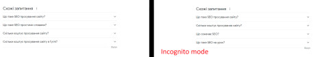 Щоб переконатися в цьому, достатньо порівняти блок схожих запитань у звичайному режимі й у режимі «Інкогніто». Як бачите, різниця доволі суттєва: