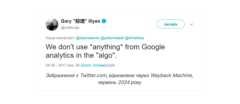 Міф №5. Google Analytics впливає на ранжування сайтуІснує думка, що пошуковий гігант Гугл використовує дані з Google Analytics для визначення позицій сайту в пошуковій видачі. Однак це неправдива інформація, що підтверджують самі представники Google.
