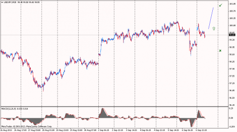 В пятницу закрыли прибыль. Сейчас сформирован разворотный импульс уровня Н1. Устанавливаю бай стоп 99.85 с целью 101.00 и стопом 98.90.